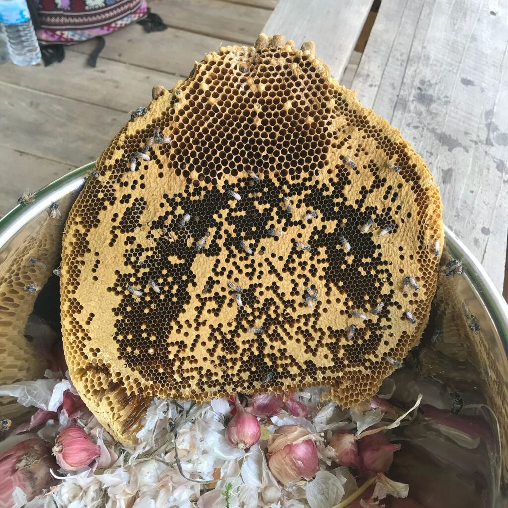 Wild foraged honey from Nan is a medicinal superfood containing high levels of antioxidants and minerals such as potassium and iron. Traditionally harvested by hand from tall jungle trees during the dry season, it is a rare delicacy used both as a natural preservative in local cuisine and a primary remedy for coughs and skin ailments.
