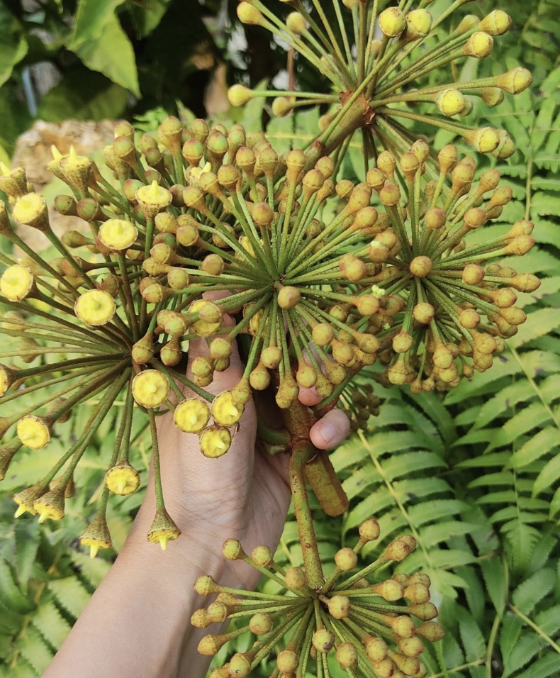 Commonly known in English as Snowflake tree (trevesia palmata), this is a rare seasonal delicacy primarily foraged from the mountainous forests of Northern Thailand. Traditionally, these flowers are used in ancient recipes such as Gaeng Dok Tang – a savory and often spicy curry. Dok Tang is valued in Thai medicine for its bio-active properties, including anti-inflammatory benefits and traditional uses as a treatment for diabetes or to aid wound healing.